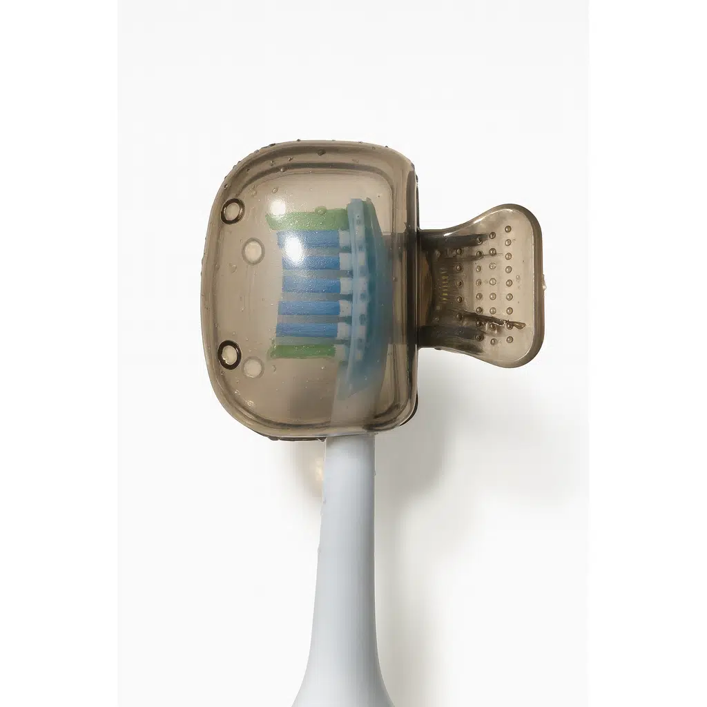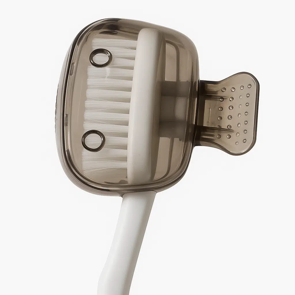 Diş fırçanızı dış etkenlerden korumak için tasarlanmış koruyucu kılıf. Hava delikli yapısı sayesinde içerde nem birikimini önler, fırçanızın daha uzun ömürlü ve hijyenik kalmasını sağlar. Dayanıklı plastik malzemeden üretilmiştir; diş fırçası başlığını tam olarak sarar ve mandallı yapısı sayesinde kolayca takılıp çıkarılabilir.