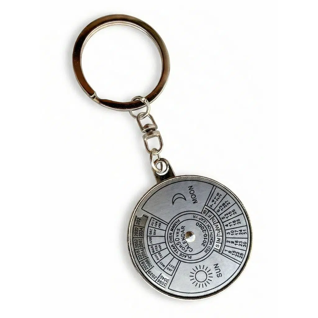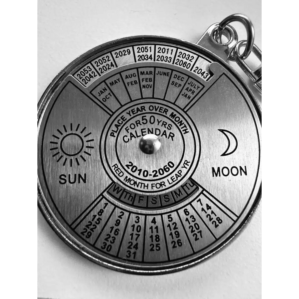 Zamanı cebinizde taşıyın! Hem şık bir aksesuar hem de eğlenceli bir mekanizma olan bu metal sonsuz takvim anahtarlık, anahtarlarınızı düzenlerken tarzınızı yansıtır. Üzerindeki döner disk mekanizması sayesinde 50 yıllık bir zaman dilimindeki (2010-2060) herhangi bir tarihin hangi güne denk geldiğini saniyeler içinde bulabilirsiniz.