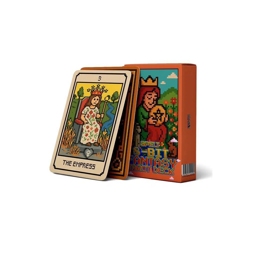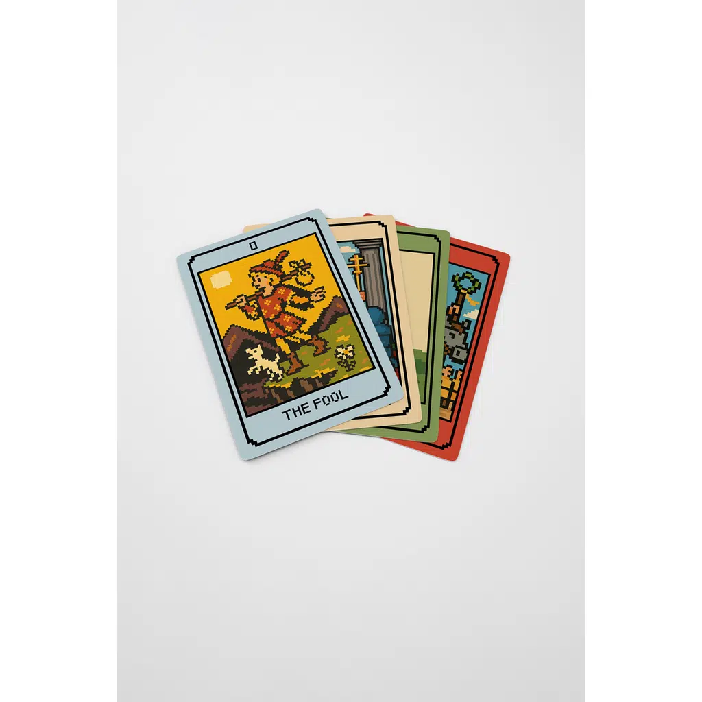 Her kart, klasik tarot sembollerinin anlamını koruyarak 8 bit piksel sanatı ile yeniden yorumlandı. Sonuç: hem nostaljik hem de modern, enerjisi yüksek bir tasarım.